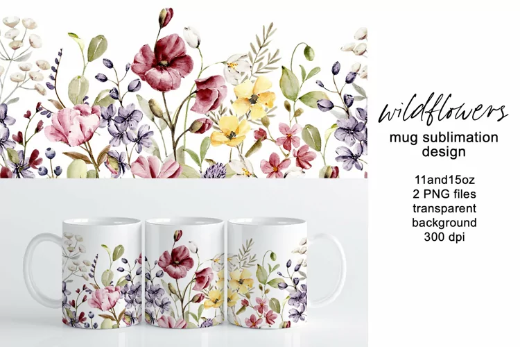 Watercolor Flowers Digital Png Wildflowers Sublimation Sublimation Mug Sublimation Design Mug Sublimation Mug Wrap