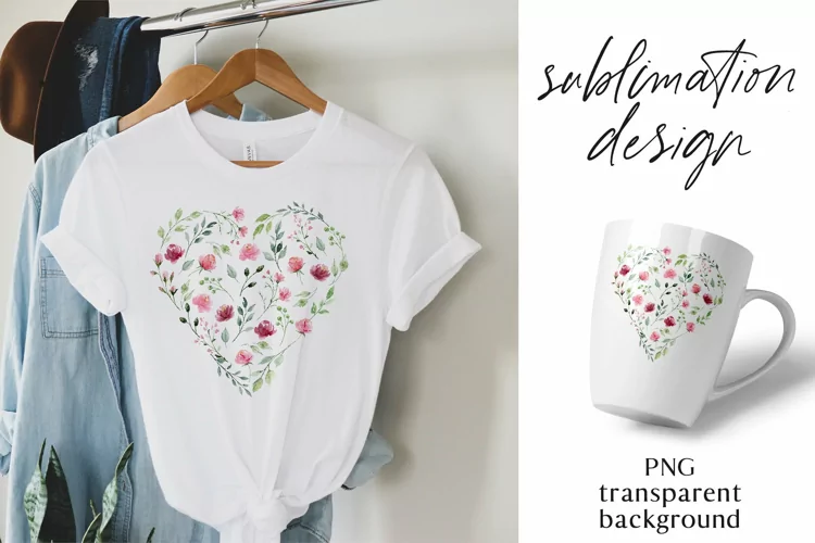 Watercolor Floral Heart Watercolor Flowers Png Sublimation Mug Sublimation Design Sublimation T-shirt Mug Wrap Flower heart