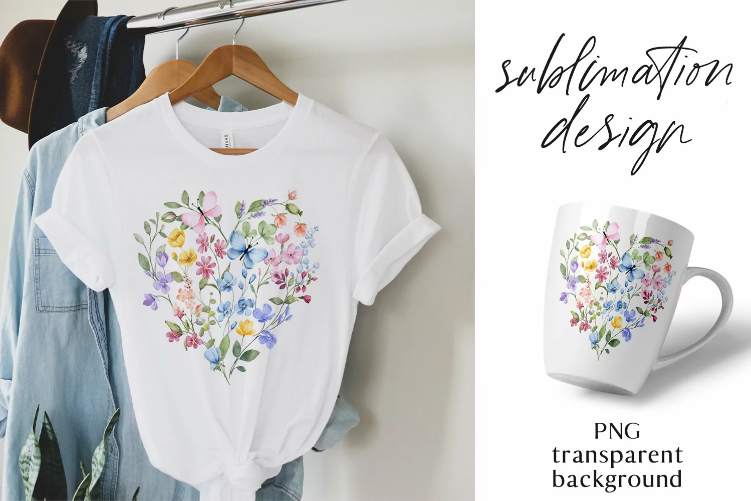 Watercolor Floral Heart Png T-shirt Design Sublimation Mug Sublimation Design Flower Heart Sublimation T-shirt Mug Wrap