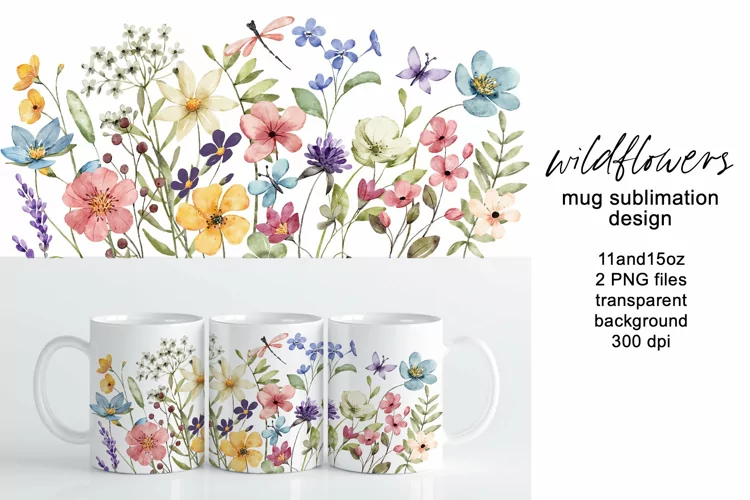 Watercolor Flowers Digital Png Wildflowers Sublimation Sublimation Mug Sublimation Design Mug Sublimation Mug Wrap