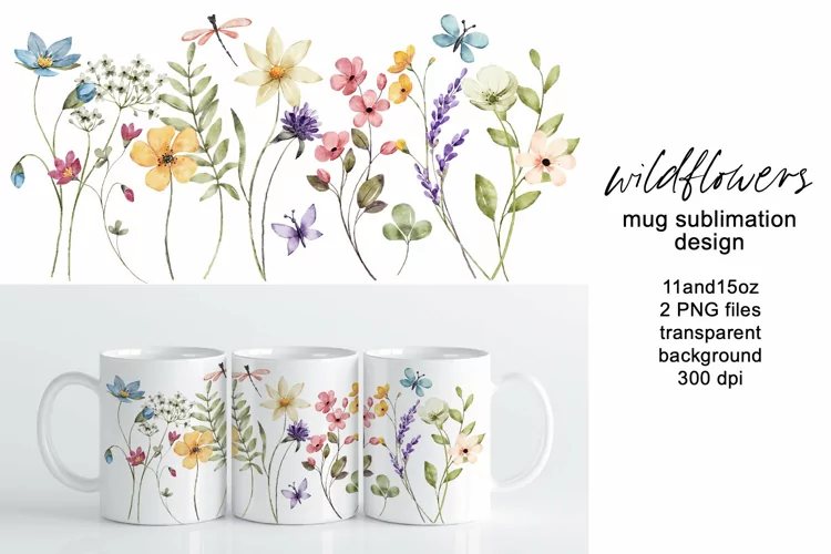 Watercolor Flowers Digital Png Wildflowers Sublimation Sublimation Mug Sublimation Design Mug Sublimation Mug Wrap
