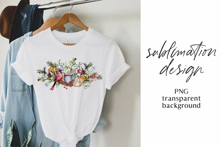 Sublimation design, Christmas, PNG file, transparent background, watercolor clipart.