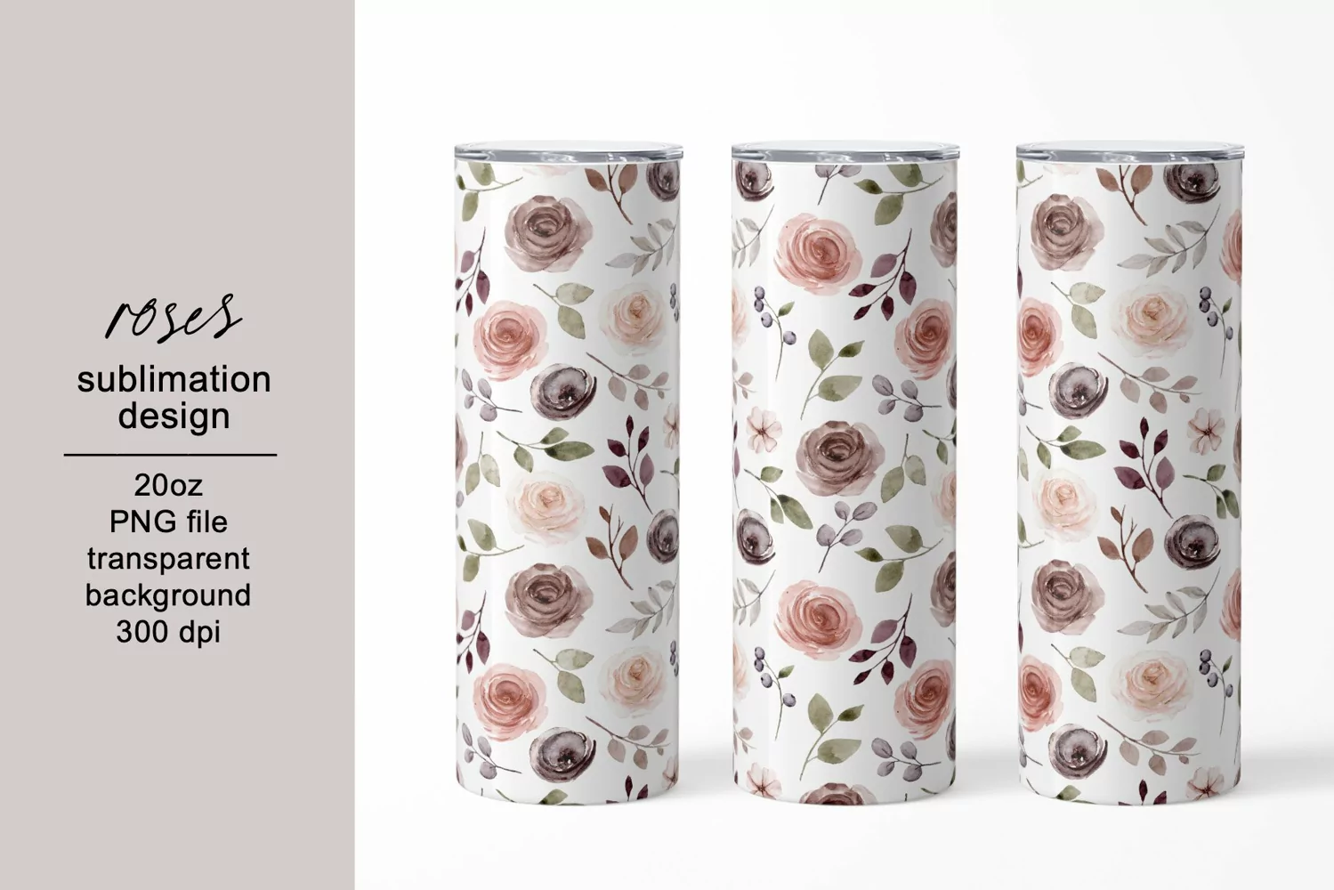 Tumbler sublimation design with roses, png file, transparent background, watercolor clipart.