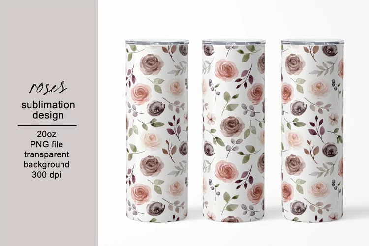 Watercolor Flowers Png Roses Sublimation Sublimation Design Tumbler Png Tumbler Wrap Tumbler Sublimation Leaves Tumbler