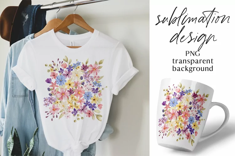 Flowers and leaves, sublimation design, PNG file, transparent background, watercolor clipart.