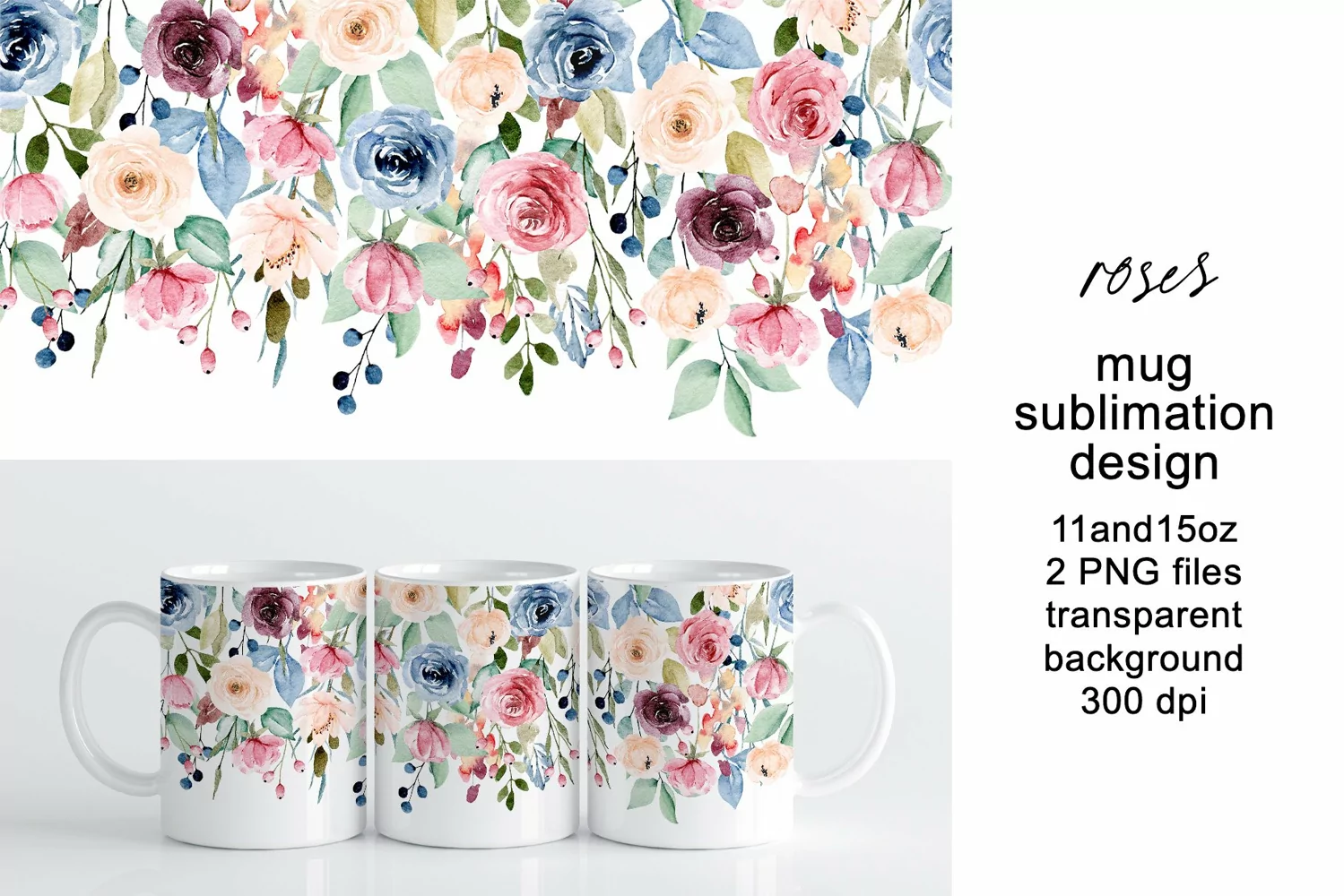 Watercolor Flowers Png Roses Mug Sublimation Sublimation Mug Sublimation Design Mug Sublimation Mug Wrap