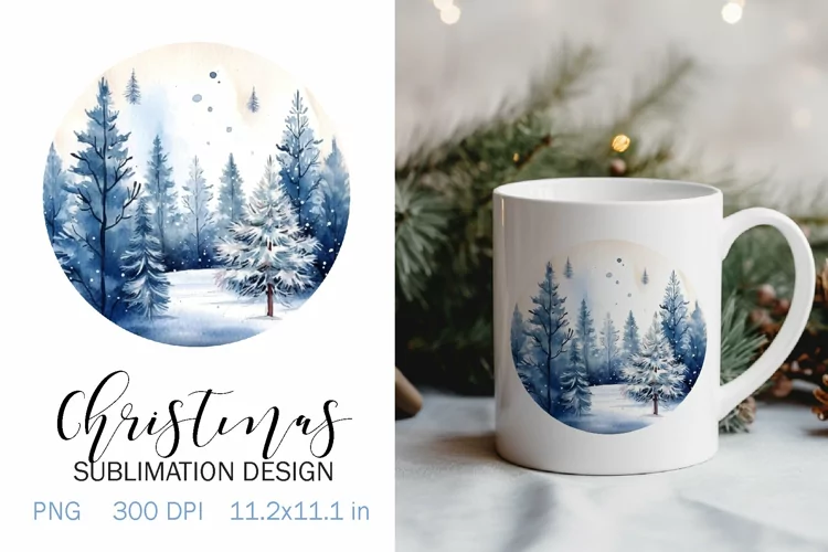 Christmas Sublimation Design PNG - Watercolor Forest clipart example image 1