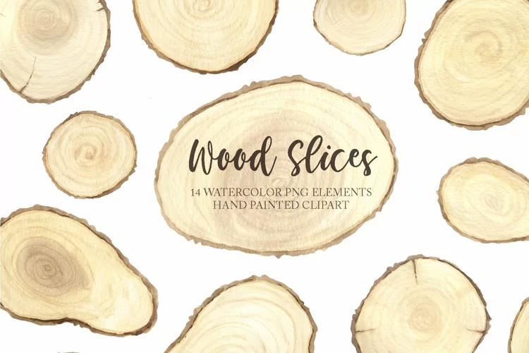 Watercolor Wooden Slices Set
