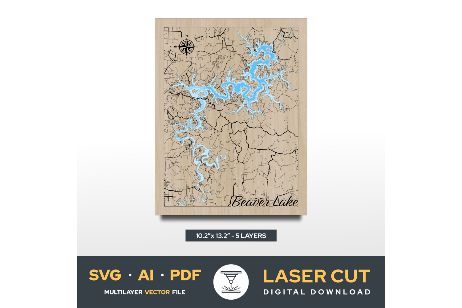 Lake Map Beaver Lake 3d Map Layered Lake Map