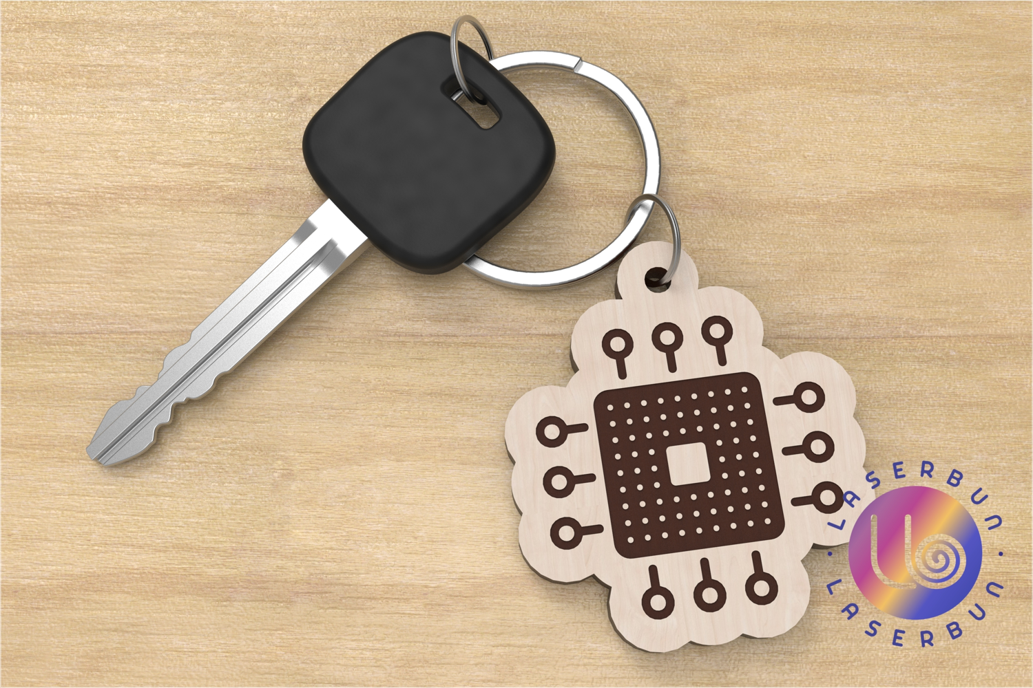Tech Keychain SVG Microchip Design for Laser Cutting