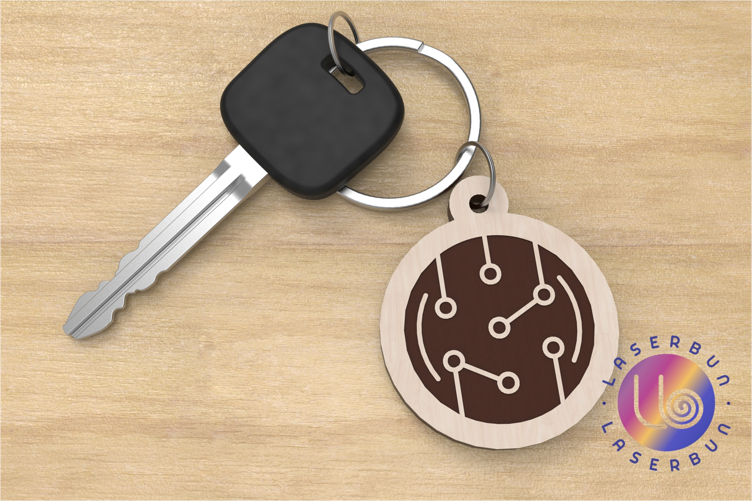 Svg File Laser Cutting Keychain Microchip Digital Svg Engraved Keychain Futuristic Chip