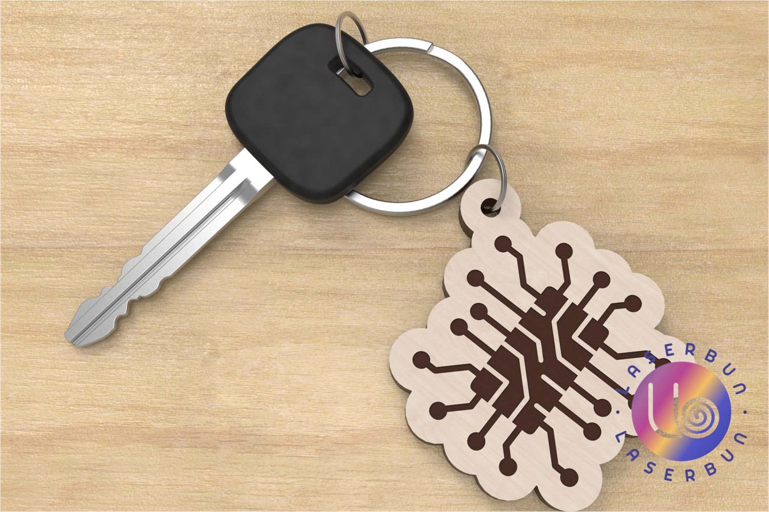 Laser Cut Keychain SVG Microchip Futuristic Tech Design