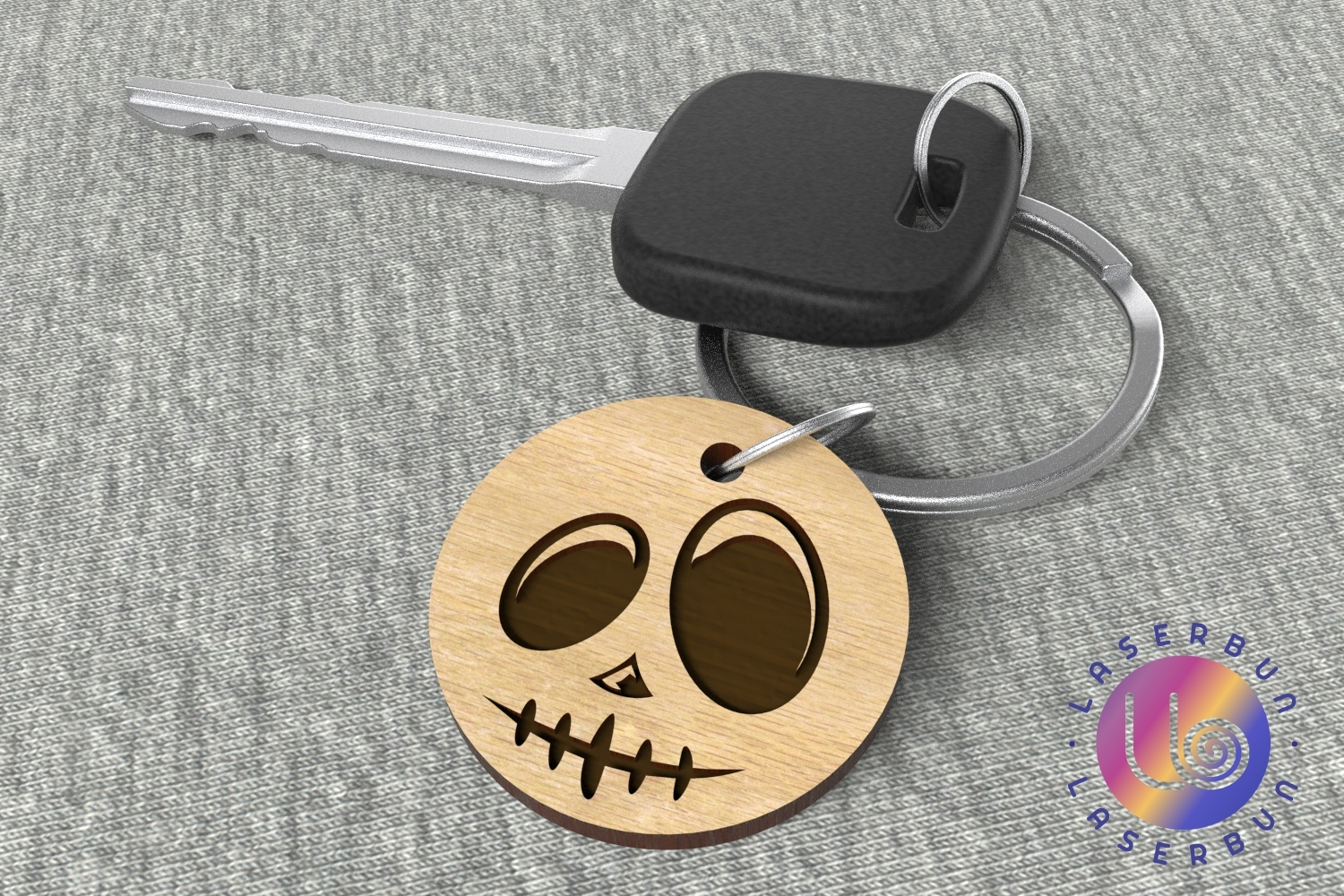Fun Halloween face keychains for laser cutting and engraving! The round design features a pumpkin face carved into a silly, spooky, grinning, or surprised expression. Perfect for themed gifts, fall markets, or decor accents.
