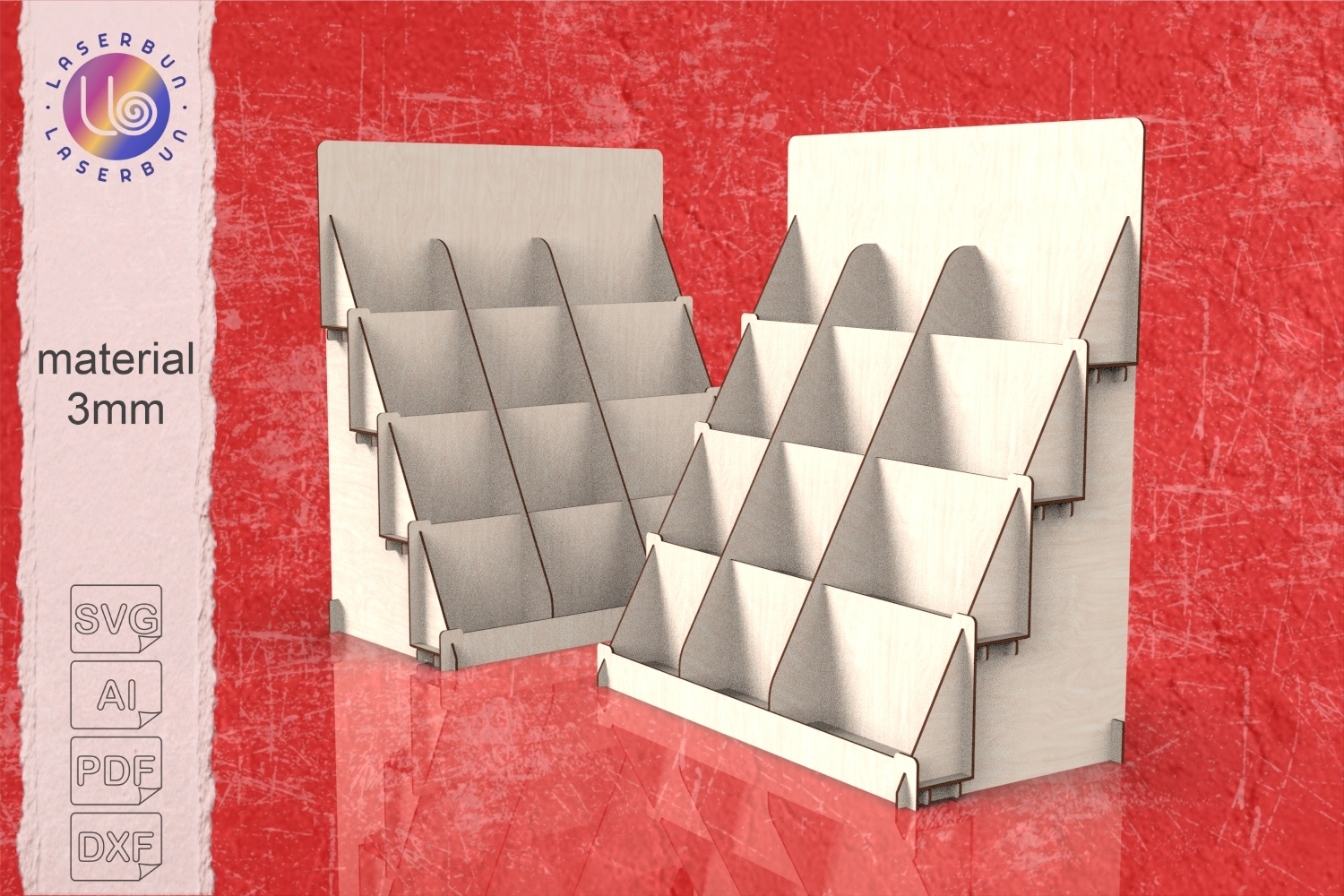 Laser Cut Display Reinforced Stand Svg 3mm Cut Shelf Svg Narrow Rack Step Tray Svg Svg Booth File Stable Tier Stand Svg For Markets Upright Rack Svg