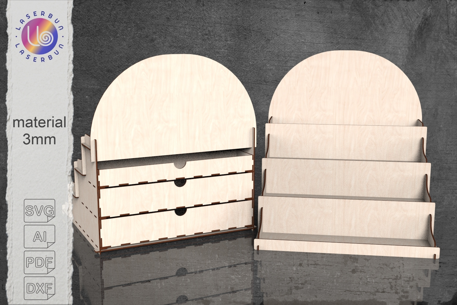 Similar Design Products to Compact Display Stand SVG with 3 Drawers