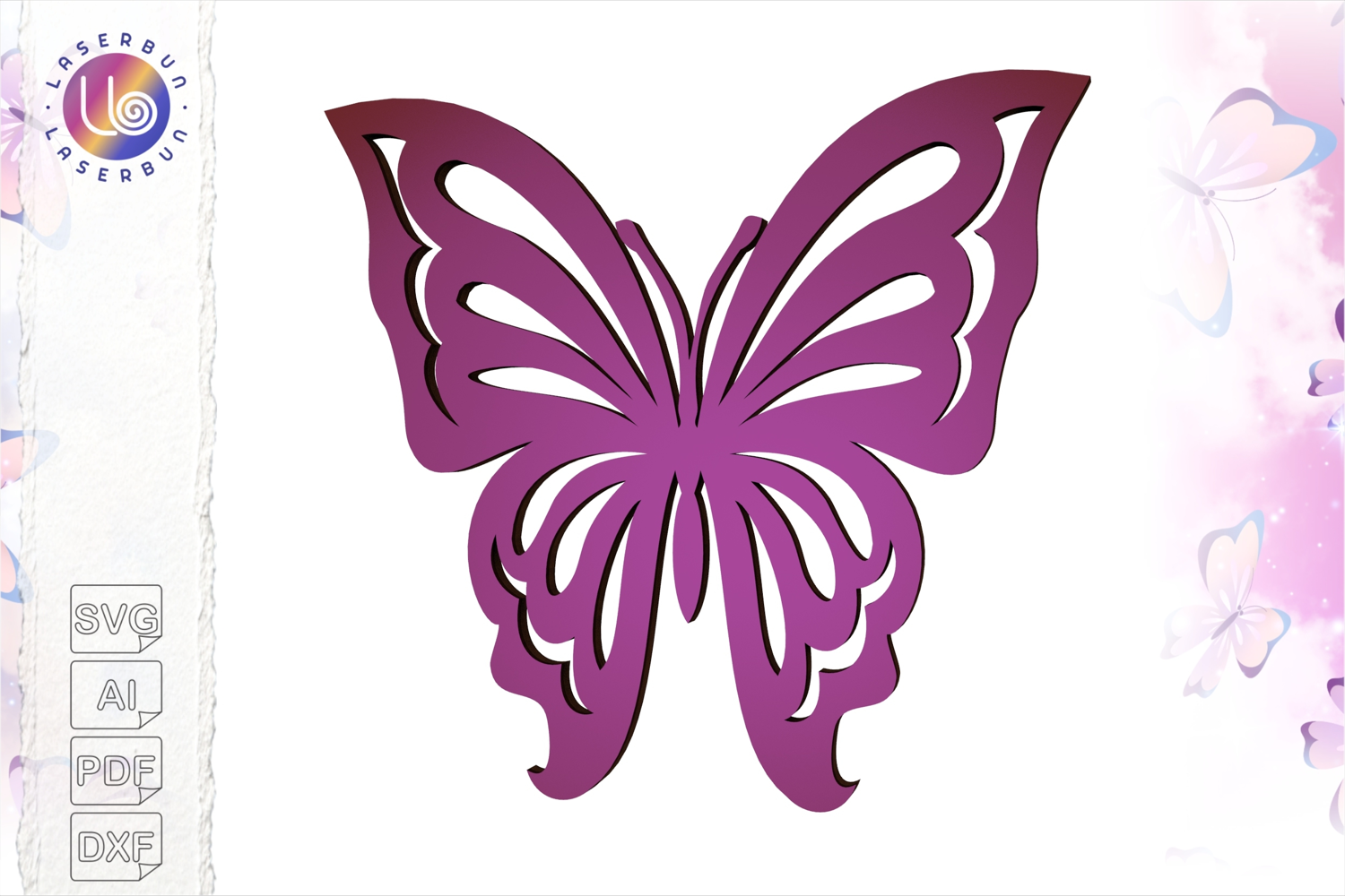 This intricate butterfly design is perfect for laser cutting, plotter machines, or even manual cutting with a craft knife. It works beautifully for cards, gift decorations, scrapbook pages, and DIY crafts.
