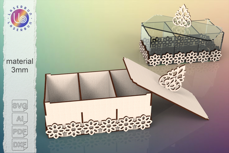 Box for sweets, jewelry, gifts. Glowforge laser cut files box. Lasercut file trinkets jewelry box. Vector SVG DXF CNC laser cutting files.