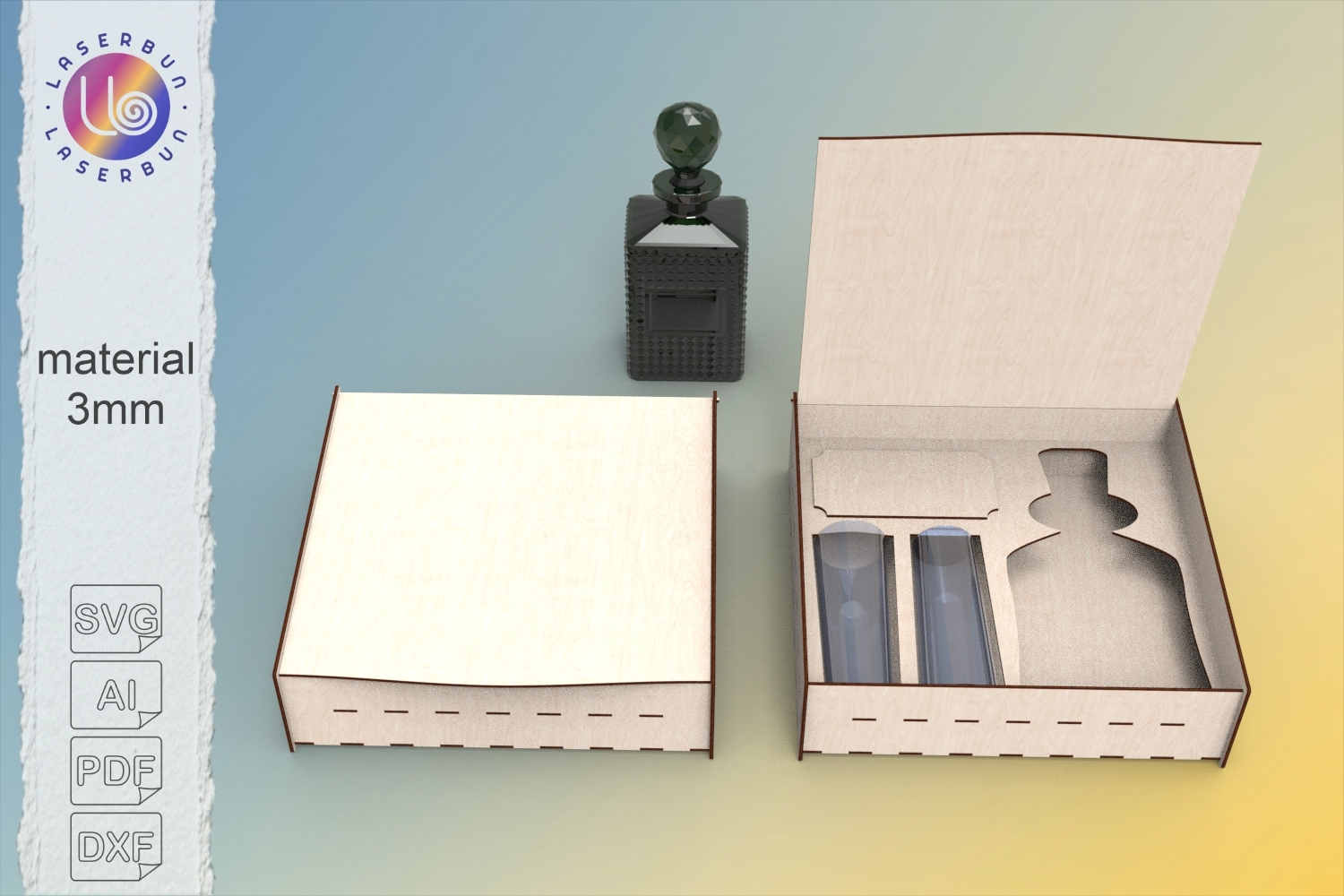 Gift Box Template Laser Cut Box 3mm Wood Whiskey Packaging Decanter Gift Case Alcohol Box Svg Wooden Box File Cnc Packaging Liquor Box Design Svg Ai Pdf Dxf