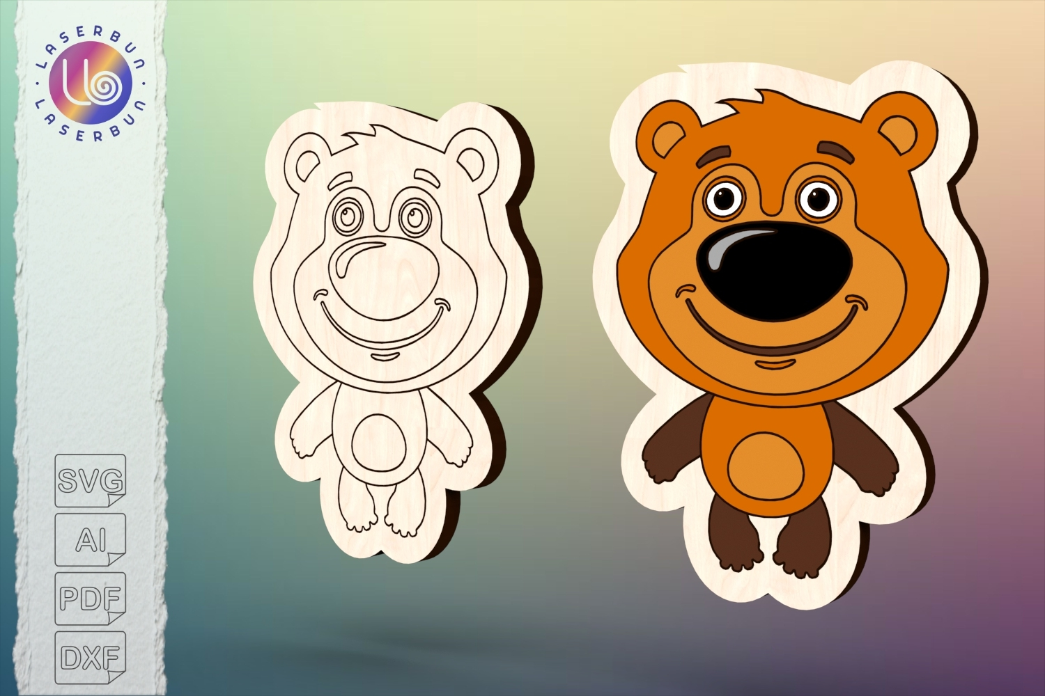 Cartoon bear laser cut file, cute animal vector template toy example image 1