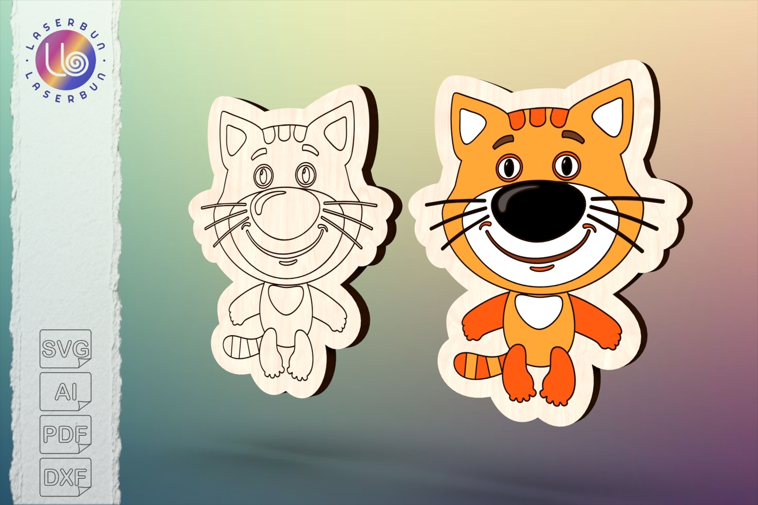Cartoon cat laser cut file, cute animal vector template