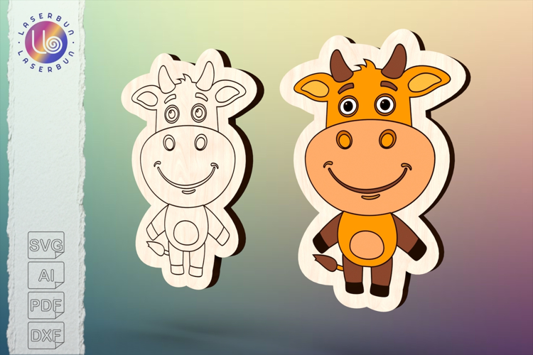 Similar Design Products to Cartoon cow laser cut file, cute farm animal vector template