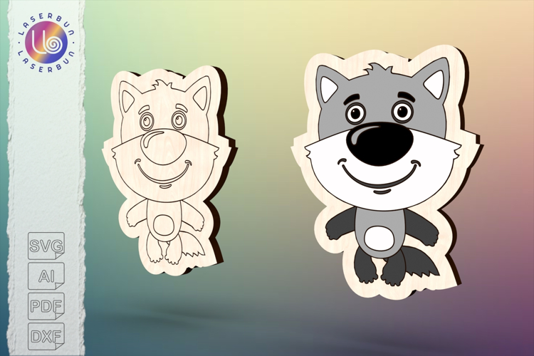 Wolf mini vector for laser cutting, woodland animal charm example image 1