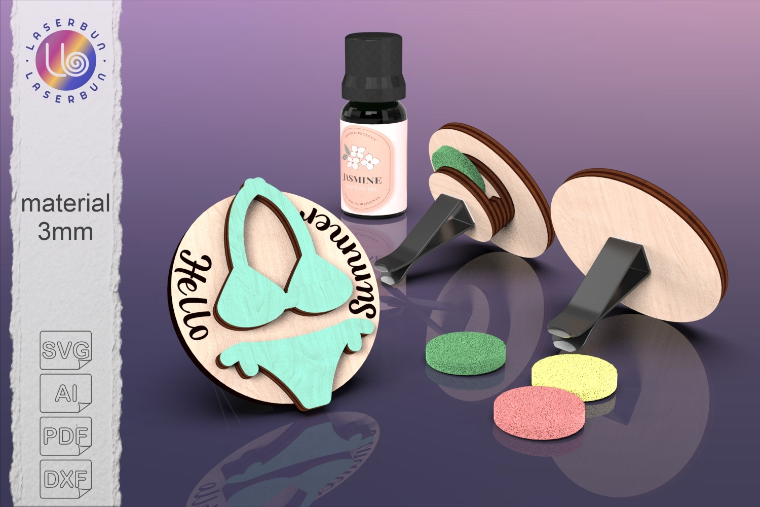 Wood Craft Svg Laser Cut Summer Small Laser Design Beach Theme File Air Vent Accessory Seasonal Craft File Swimsuit Car Decor Summer Dashboard Diy Car Accent Maker Gift Idea