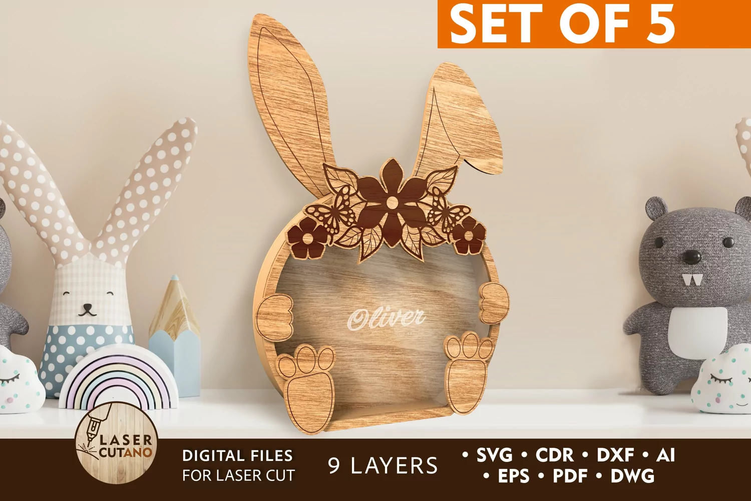 SET OF 5 EASTER RABBITS Laser Cut Files layered svg bundle