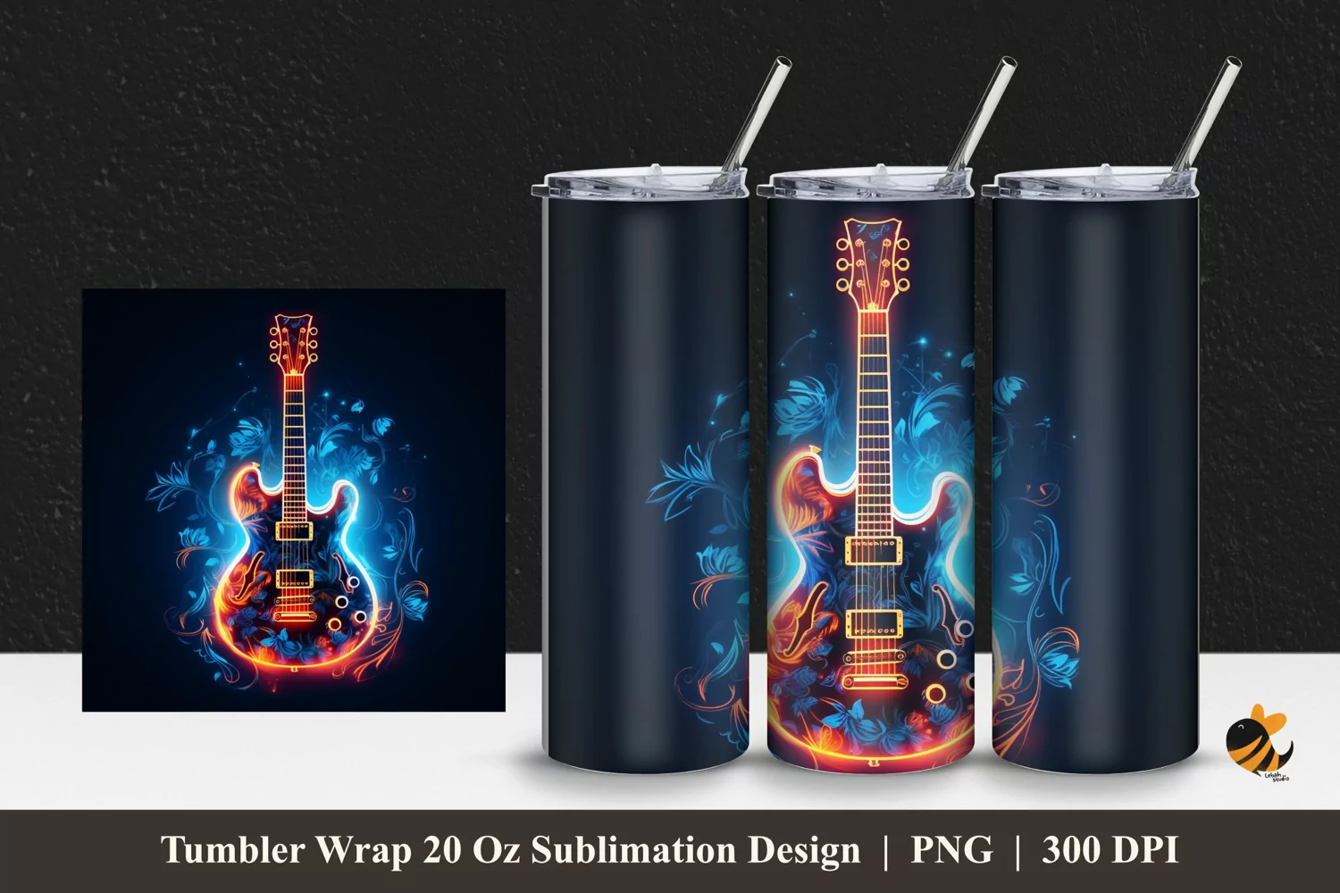Colorful Guitar Tumbler Wrap Sublimation Design 1 example image 1