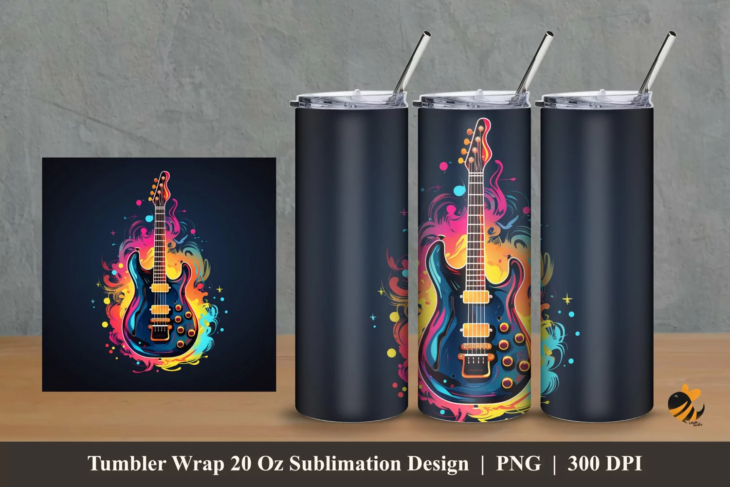 Colorful Guitar Tumbler Wrap Sublimation Design 2 example image 1