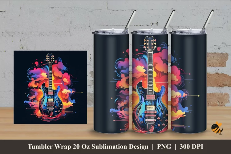 Colorful Guitar Tumbler Wrap Sublimation Design