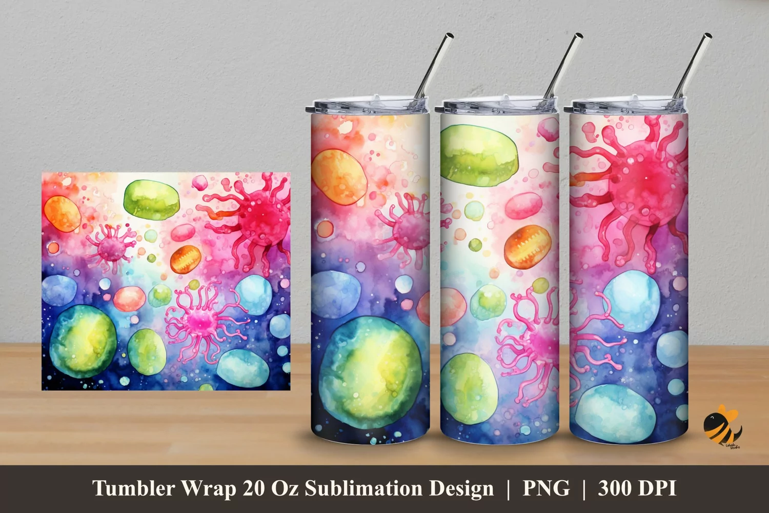 Watercolor Bacteria Tumbler Wrap Sublimation Design 5
