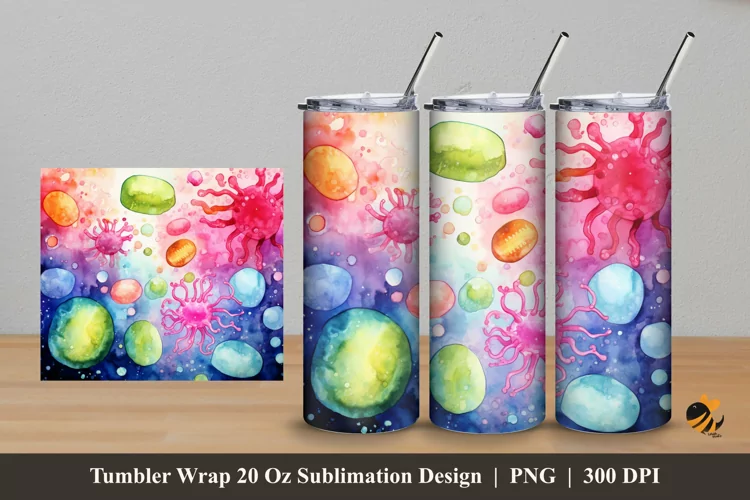 Watercolor Bacteria Tumbler Wrap Sublimation Design