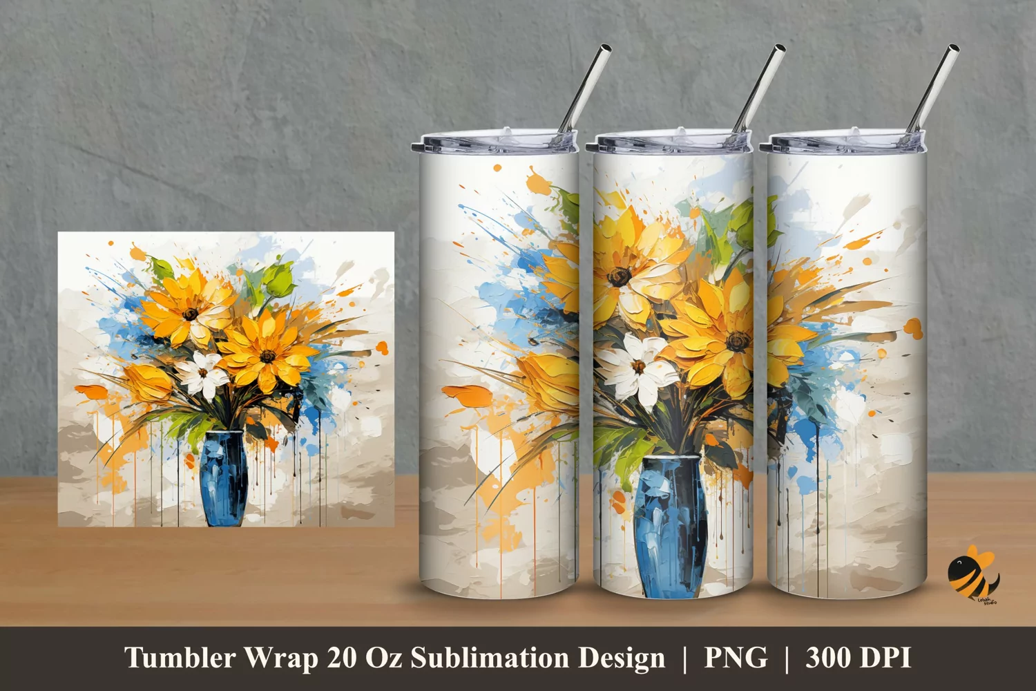 Aesthetic Painting Flower Tumbler Wrap Sublimation Design 2 example image 1