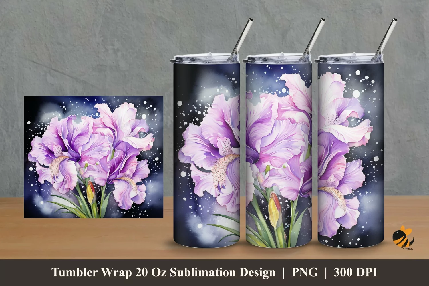 Iris Flower Tumbler Wrap Sublimation Design 2 example image 1