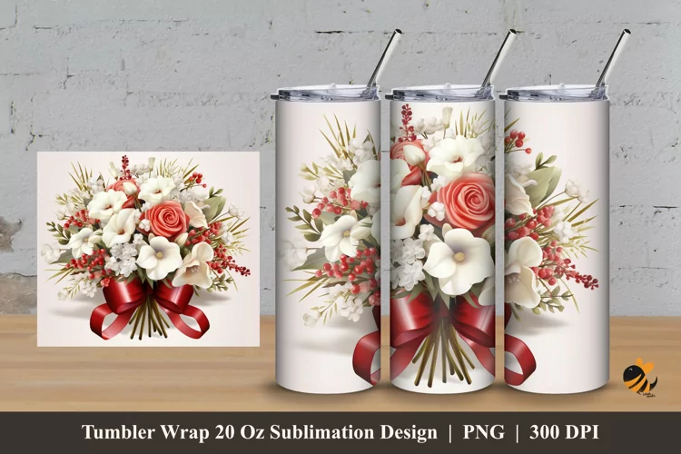 Ribbon Floral Bouquet Tumbler Wrap Sublimation Design 3 example image 1