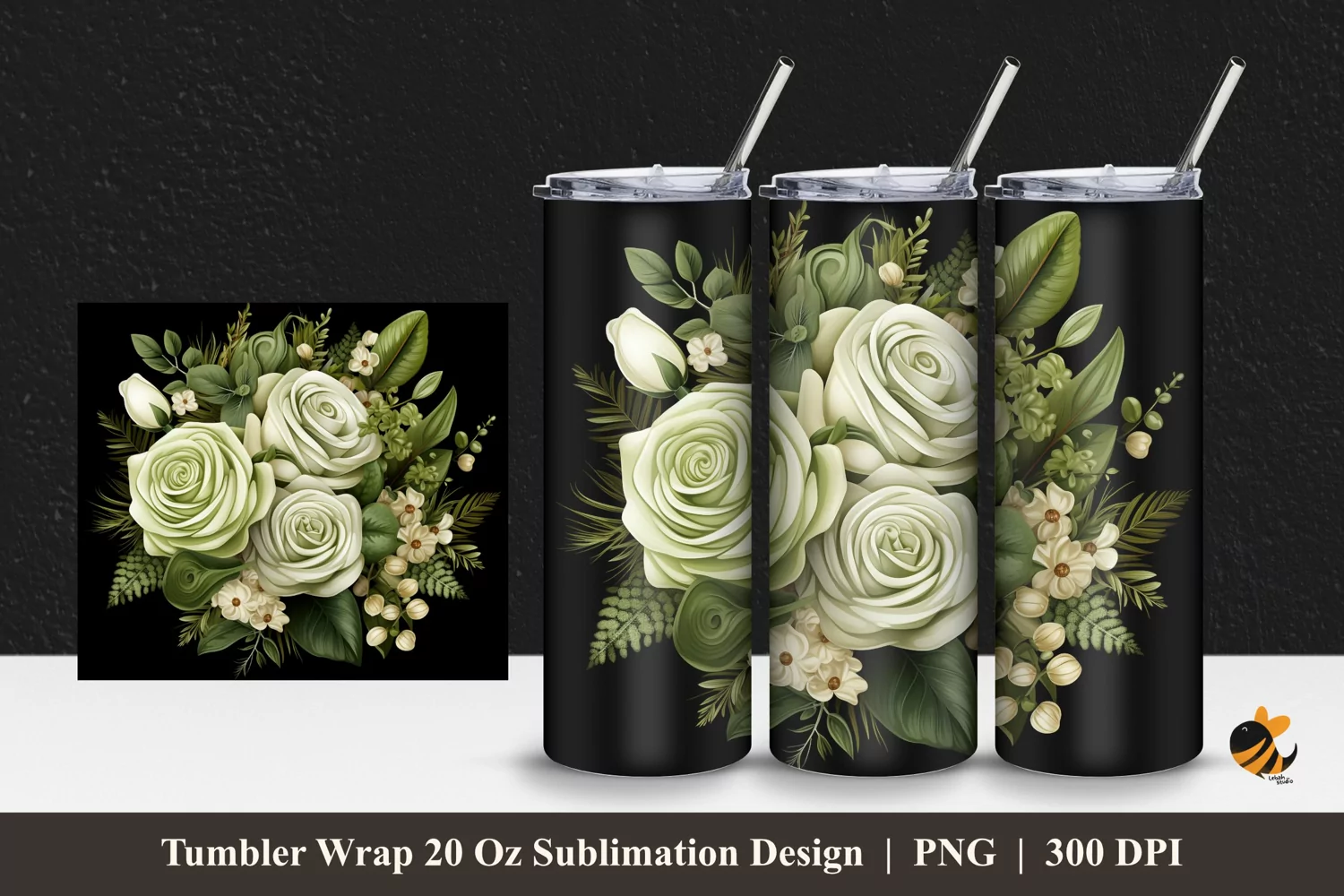 White Olive Bouquet Tumbler Wrap Sublimation Design 1 example image 1