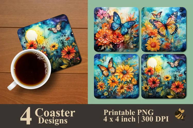 Coaster Sublimation Design Coaster Template Coaster Design Square Coaster Coaster Sublimation Design Coaster Sublimation Vintage Coaster Modern Coaster Sunflower And Butterfly Coaster Sublimation Design