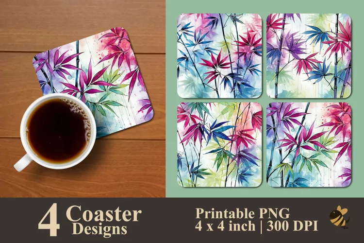 Coaster Sublimation Design Coaster Template Coaster Design Square Coaster Coaster Sublimation Design Coaster Sublimation Vintage Coaster Modern Coaster Colorful Bamboo Leaves Coaster Sublimation Designs