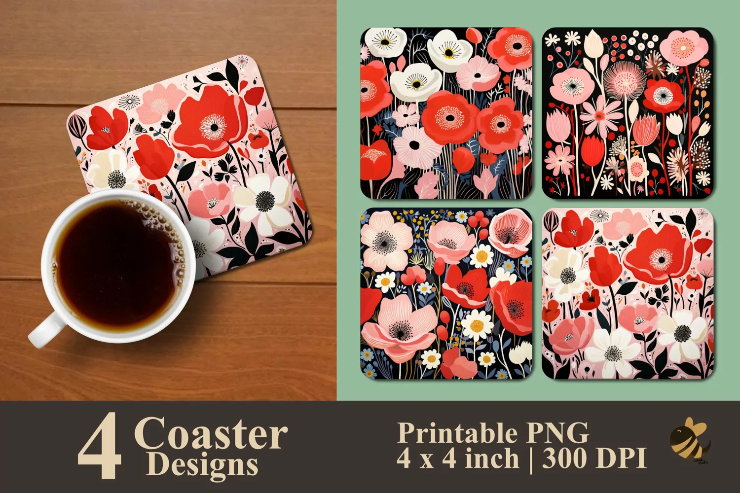 Coaster Sublimation Design Coaster Template Coaster Design Square Coaster Coaster Sublimation Design Coaster Sublimation Vintage Coaster Modern Coaster Red Flowers Coaster Sublimation Designs