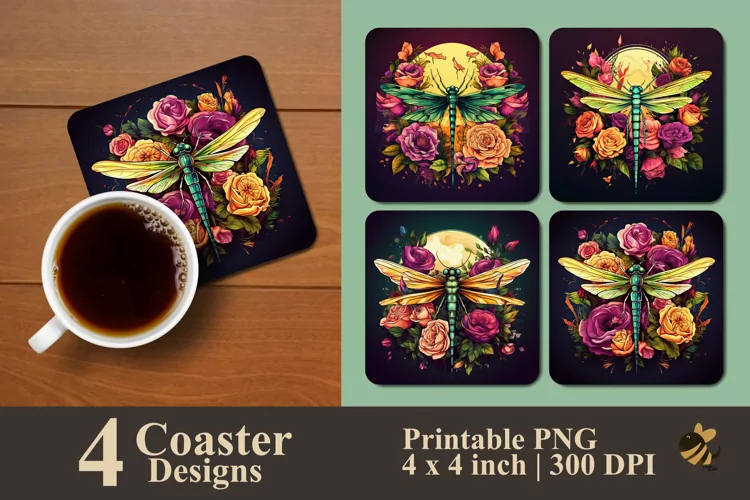 Coaster Sublimation Design Coaster Template Coaster Design Square Coaster Coaster Sublimation Design Coaster Sublimation Vintage Coaster Modern Coaster Dragonfly And Roses Coaster Sublimation Designs