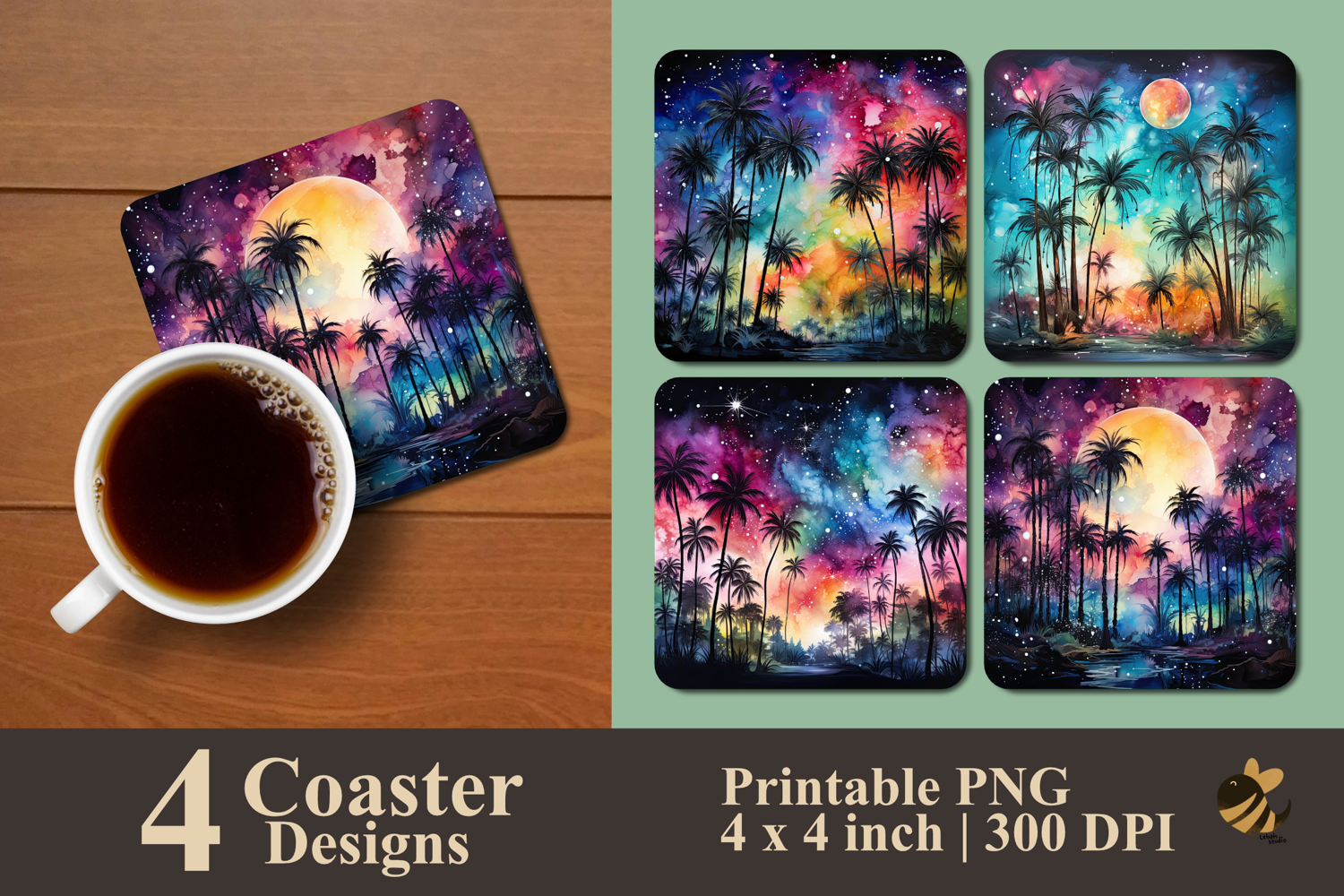 • 4 Coaster design about 4x4 inches around 1200x1200 px PNG files 300 DPI