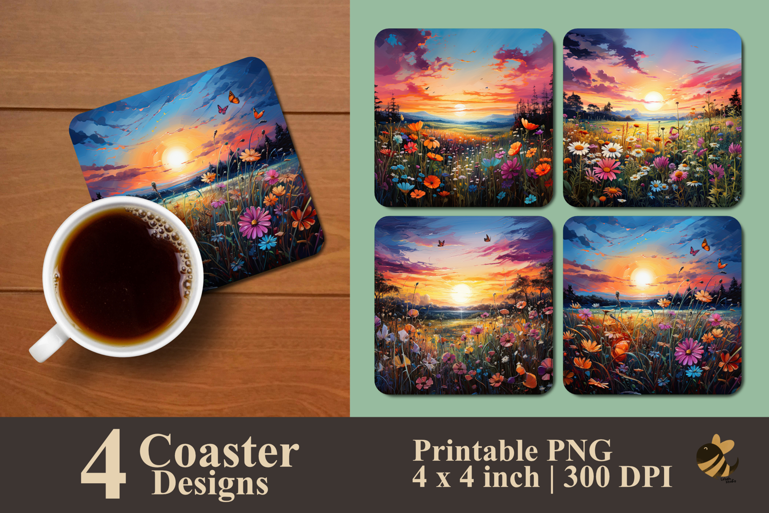 Coaster Sublimation Design Coaster Template Coaster Design Square Coaster Coaster Sublimation Design Coaster Sublimation Vintage Coaster Modern Coaster Wildflower Dreamscape Coaster Sublimation Design