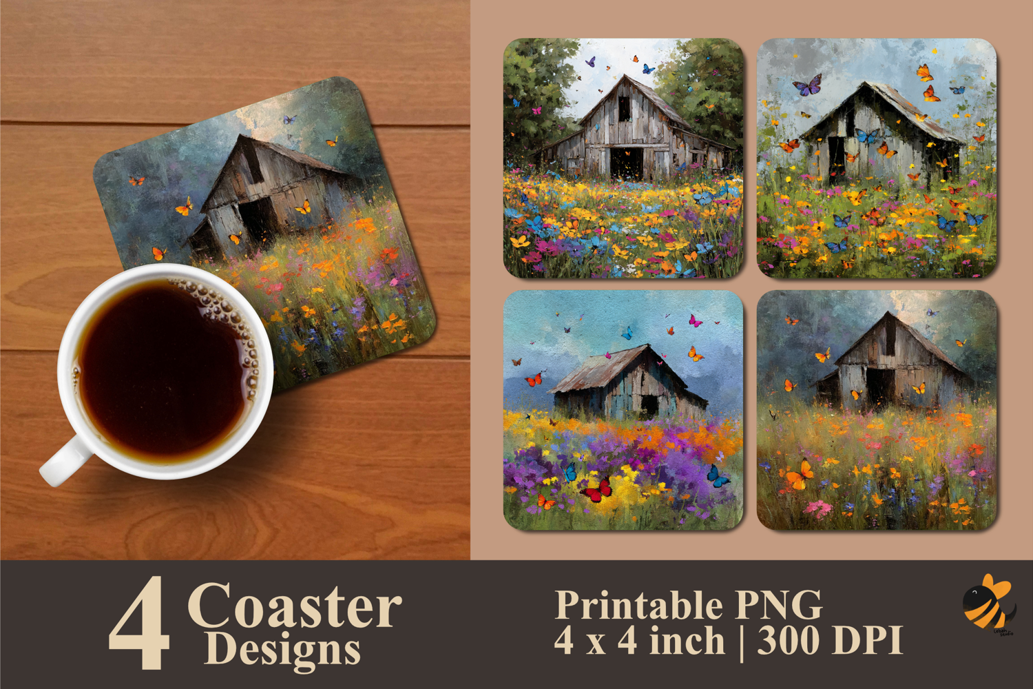 • 4 Coaster design about 4x4 inches around 1200x1200 px PNG files 300 DPI