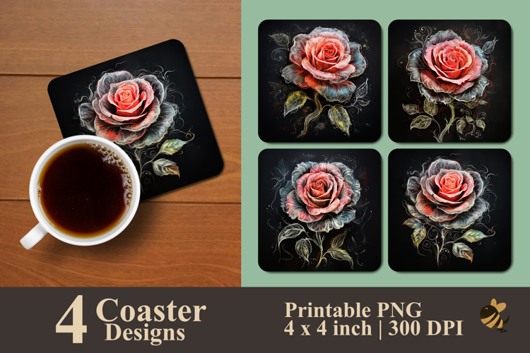 Chalk Dust Rose Coaster Sublimation Design example image 1