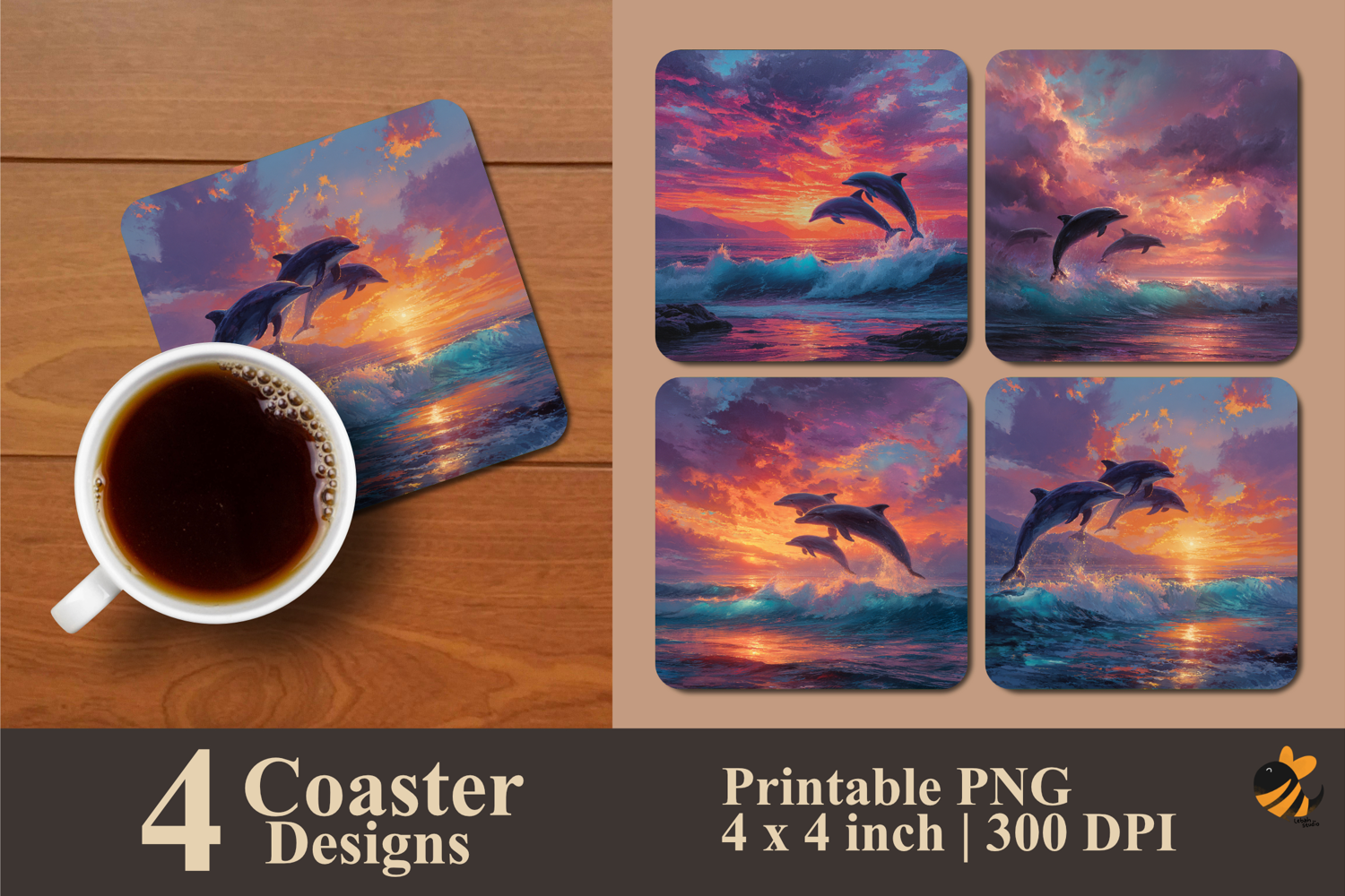 Dolphin Fun Coaster Sublimation Designs example image 1