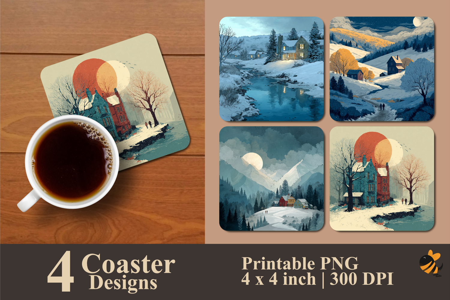 • 4 Coaster design about 4x4 inches around 1200x1200 px PNG files 300 DPI