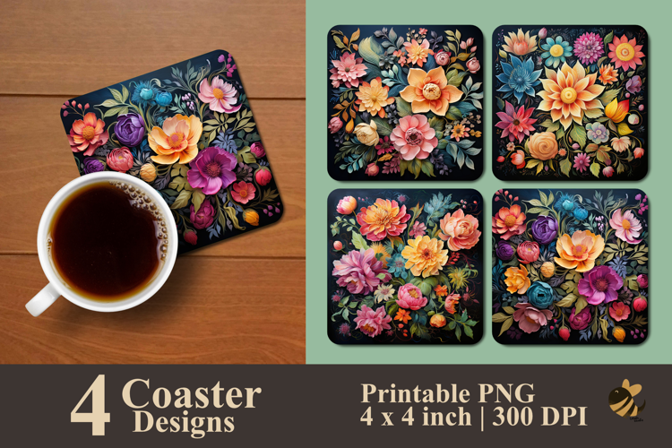 • 4 Coaster design about 4x4 inches around 1200x1200 px PNG files 300 DPI