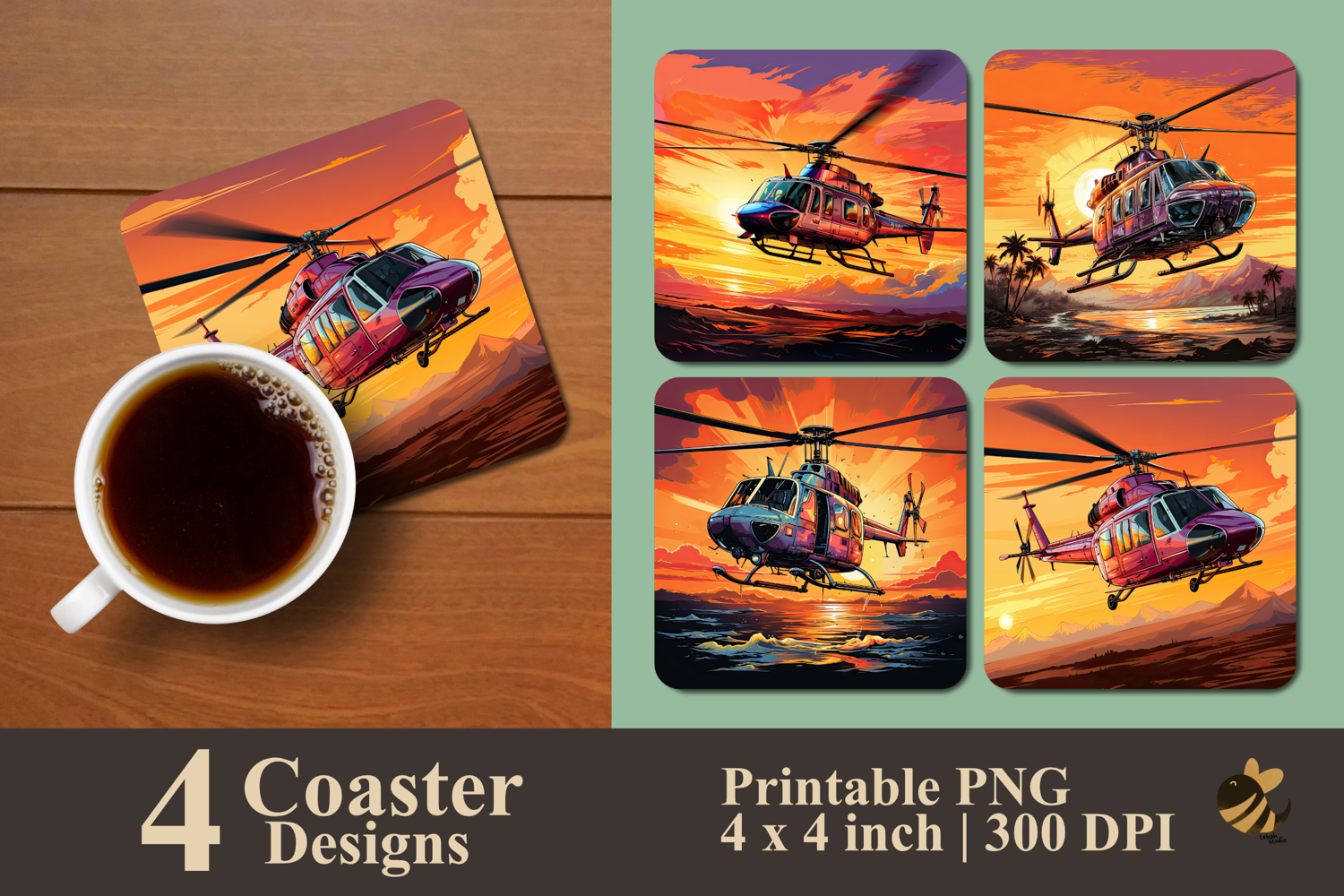Coaster Sublimation Design Coaster Template Coaster Design Square Coaster Coaster Sublimation Design Coaster Sublimation Vintage Coaster Modern Coaster Helicopter In The Sunset Sky Coaster Sublimation