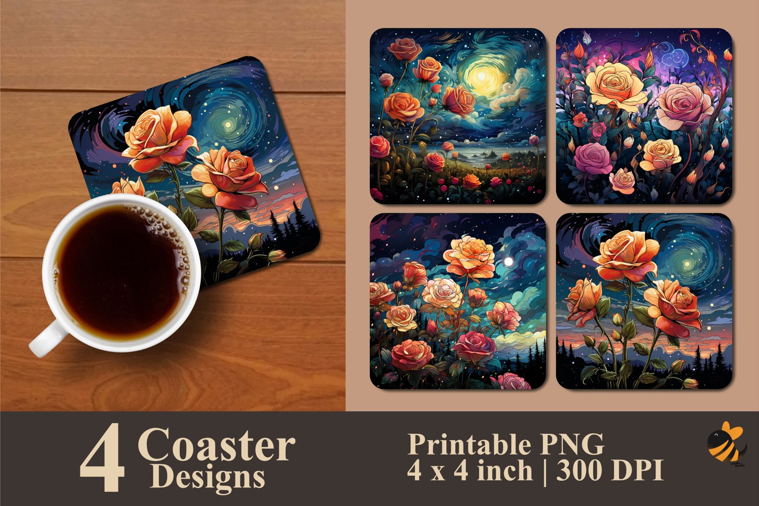 • 4 Coaster design about 4x4 inches around 1200x1200 px PNG files 300 DPI